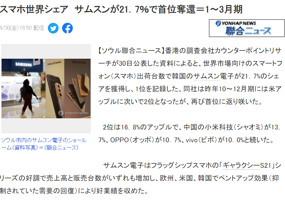 自称SAMSUNG社員くん。君は過去に社員証の画像を拾ってきたはいいが、変更前にのものだったらしいじゃないかkkkkkkkkk1700万台多く売ったのに…サムスン、アップル売上高の半分にも満たず