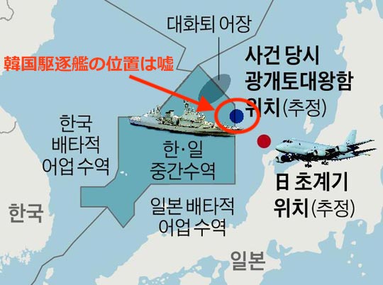아무튼 대한민국 측의 구조 작업 중, 해상자위대 소속 P-1(對潛초계기) 1대가, 광개토대왕艦과 5001艦을 향해, 거리 500m/고도 150m까리 접근했다가 물러났다.