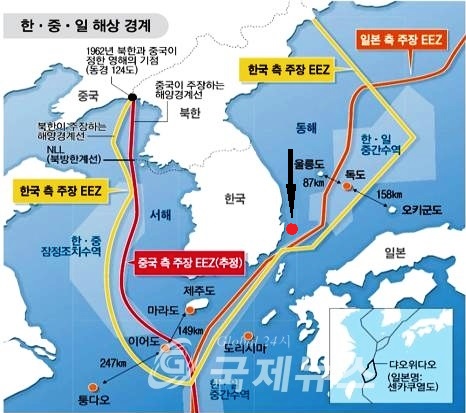 仮に韓国の主張するEEZを境界としたところで発生現場は日本のEEZ内ということは明白