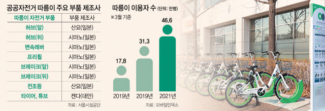 新型コロナウイルス感染症(コロナ19)事態の長期化に伴い、社会的距離を置くことによって自転車人口が大幅に増えた中、自転車需要増加の最大の恩恵を受けているところは、日本の自転車部品メーカーという評価が出ている。ソウル市が運営する公共自転車タルンイでさえ、ほぼすべての部品を日本企業が供給しているという。2000年代に入り、国内の自転車部品産業が事実上崩壊し、最近は、国内製の主要部品を使おうとしても使えないのが現状だという指摘だ。