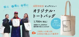 『ビッグイシューオリジナル・トートバッグ』、完売しました。ありがとうございます