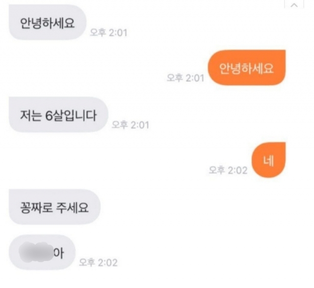 最近、オンライン上のコミュニティでは、本人の年齢が6歳だと主張し、無料を要求したニンジンマーケットでの会話内容が共有され、話題となった。 その会話の内容を見ると、購入者は即座に「私は6歳です。 ただでお願いします」と声をかけた。 販売者が答えないと、「○○○あ」とひどい悪口を言ったりもした。