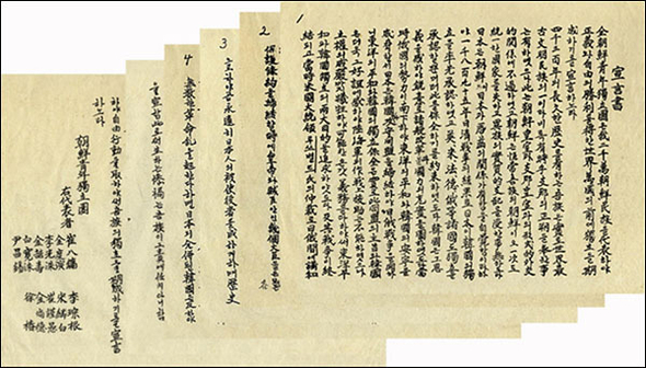 東京都千代田区にある在日本韓国YMCAには「2・8独立宣言資料室」がある。1919年2月8日、東京の朝鮮人留学生は、在日本東京朝鮮YMCA(現在の在日本韓国YMCA)で独立宣言文を発表した。資料室は、2・8独立宣言代表11人の写真と共に、韓国語と日本語の宣言文も展示している。宣言文を改めて読んでみると、「東洋平和」という言葉がとても強調されている印象を受ける。宣言文には「日本は朝鮮が日本と唇歯の関係にあることを自覚していると称して、1895年清日戦争の結果、日本が率先して韓国の独立を承認した」 「ついに(露日)戦争が終結し、当時の米国大統領ルーズベルトの仲裁で露日間に講和会議が開かれたが、日本は同盟国である韓国の参加を許さず、露日両国代表者の間で任意に日本の韓国に対する宗主権を議定し、日本は優越した兵力を持って韓国の独立を保全するという旧約に違反した」と日本の表裏不一致な行動を批判する。続けて「日本に合併された韓国は、これに抗すれば東洋平和を乱す禍根となるであろう。わが民族は、正当な方法によってわが民族の自由を追求する」と訴える。