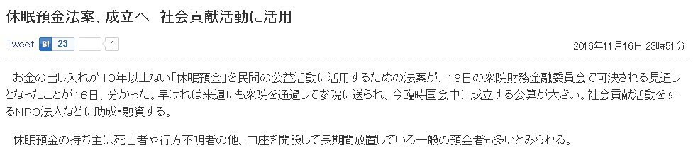 あ、もう少し荒れるまで待った方がよかった?確か休眠口座は銀行のものになるはずだったと