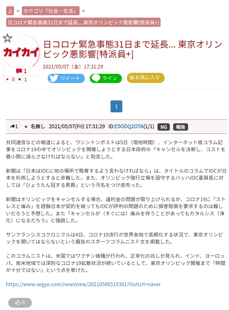 意味不明。何も韓国人が「東京オリンピックを中止しろ」なんて言わなくても、ただボイコットすればいい話じゃんね