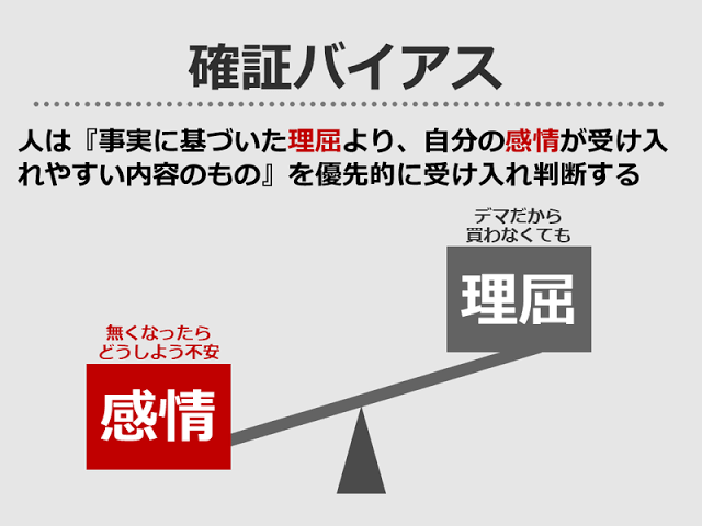 自分の思い込みや願望を強化する情報ばかりに注目してしまい、そうでない情報は軽視してしまう傾向のこと。