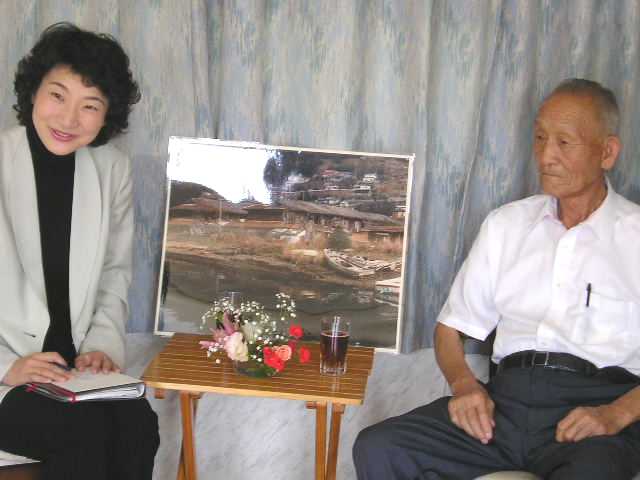 番組づくりは、まず、被爆者の朴ミンギュさんへのインタビューからはじまりました。3Fの会議室に即席でテーブルをセッティングし、冒頭はいささか緊張気味だった朴さんも、辛さんのハングルで安心されたのか、だんだんいつもの調子を取り戻され、被爆した時のことや、これまでの生活とそれをめぐる差別、そしていま現在の思いなどを、とうとうと澱みなく語ってくださいました。