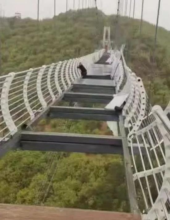 中国の観光地で、強風に高空足ガラス底抜け