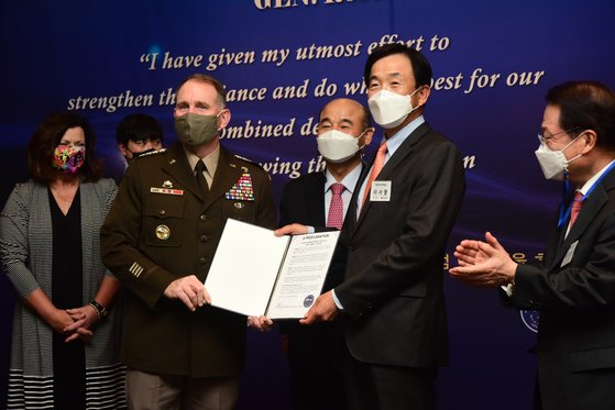 エイブラムス司令官はこの日韓米同盟財団と在韓米軍戦友会がソウル市内のホテルで開催した歓送行事での告別辞を通じ、「韓米が共有する価値が支え。表現の自由、言論の自由、集会の自由、宗教の自由、法治主義などは自由民主主義の必須要素で、両国国民はこうした価値を大切に考える」と話した。