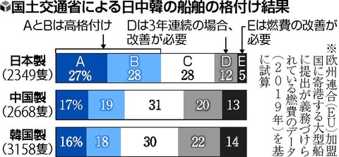 そして、燃費の良いA,Bランクの船の割合は、日本は50%超えであるのに対して、韓国はわずかに25%。