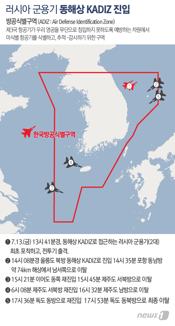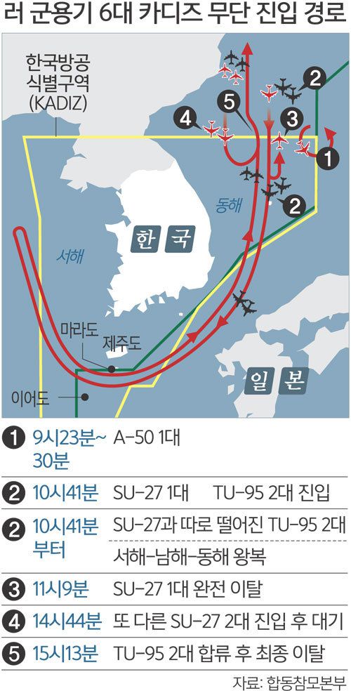 当該ロシア機が日本海上空を飛行した際に、日本と韓国のそれぞれのADIZに進入した。