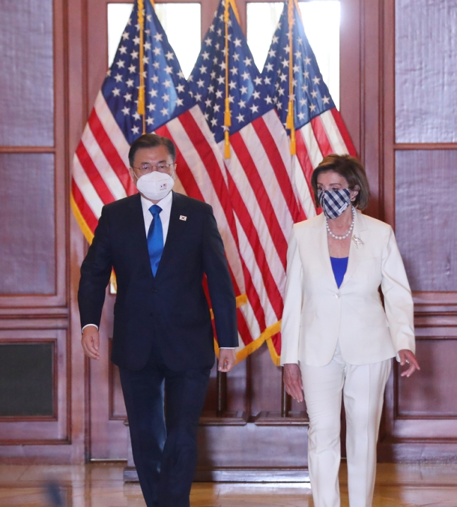 문 대통령이 펠로시 의장의 말에 대해 다시 언급이 있지는 않았다고 설명했습니다.