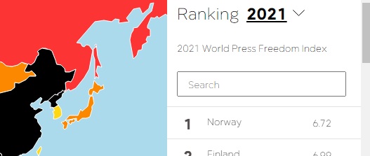 そのランキングでは報道の自由は殆ど関係なく、アンケートに答えてる人達が、その政権が好きか嫌いかで大きく順位が変わる