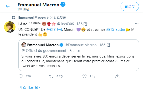 프랑스 대통령 마크롱, BTS 팬을 리트윗에
