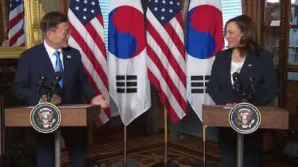 “참모들이 계속 나와서 ‘시간이 지났습니다. 시간이 지났어요’라고 말했습니다. 하지만 나는 문 대통령과의 만남이 너무 즐거워서 우리는 모든 것을 되돌렸어요. 나는 오늘 여기서 우리의 토론을 이어가기를 기대합니다. 새로운 도전 앞에 한미관계를 더욱 발전시키면서 우리는 서로 그 도전에 함께할 것입니다.”