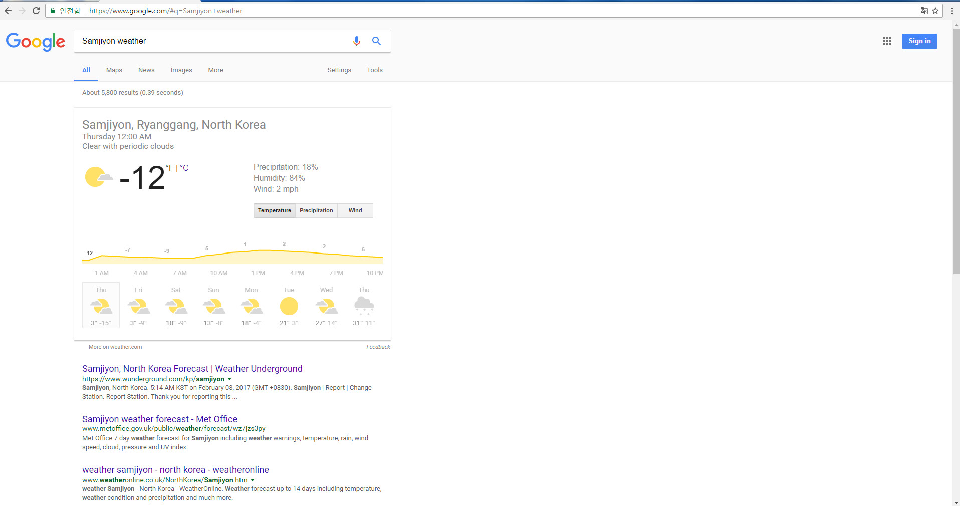 >>10 북한 양강도 삼지연의 날씨, 섭씨로 하면 영하 24도 정도 된다