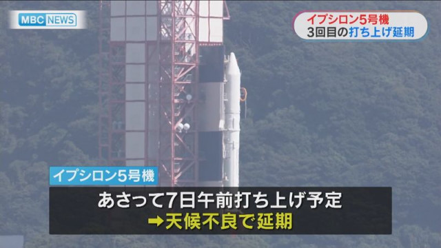 打ち上げがこれまでに2度延期されたイプシロン5号機は、7日に打ち上げられる予定でしたが、天候不良のため3回目の延期が決まりました。