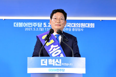 0.59%差で韓国与党代表選出 対日強硬・南北交流推進の宋永吉氏