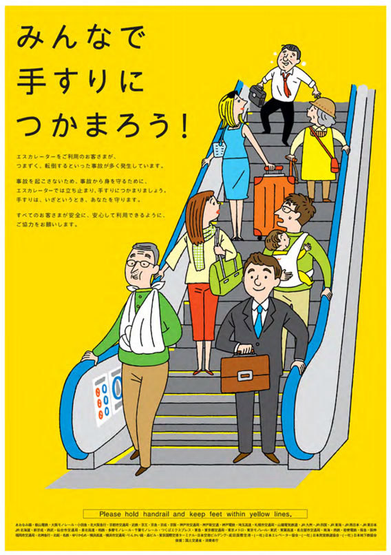 日本ではエスカレーターは歩く人のために関東(東京近郊)では右側を開け、関西(大阪近郊)では左側を開けるという暗黙の了解がある。