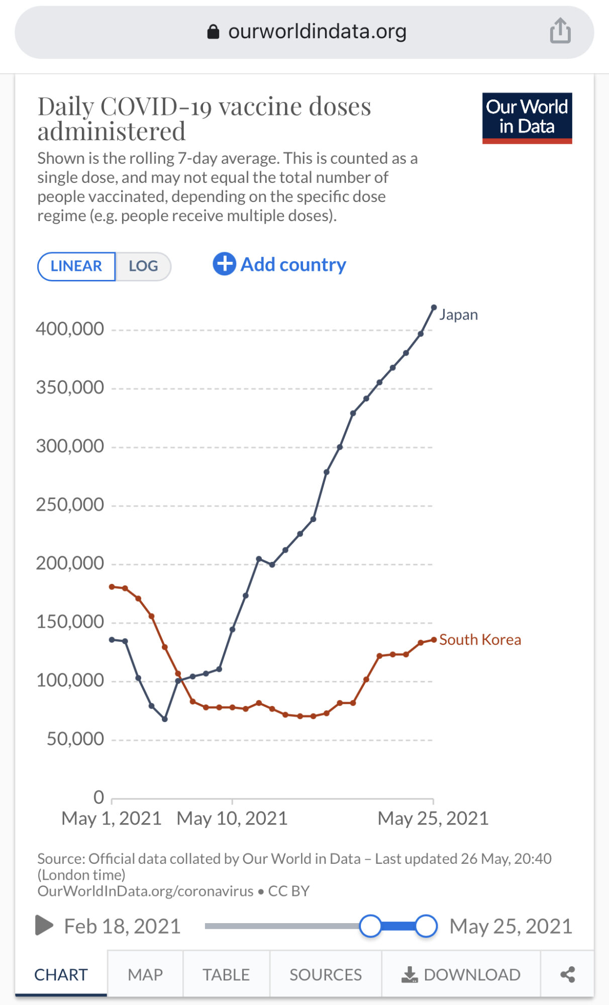 https://ourworldindata.org/grapher/daily-covid-19-vaccination-doses?time=2021-05-01..latest&country=JPN~KOR