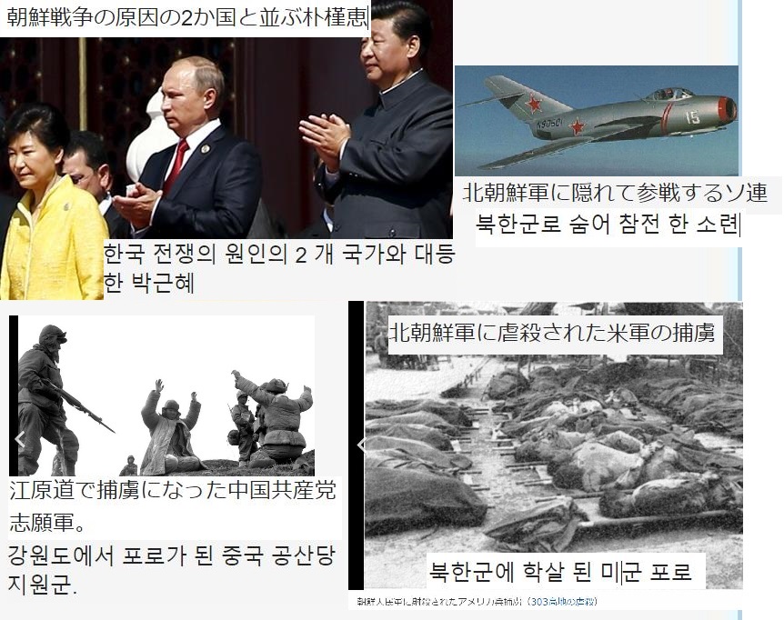 韓国が焦土と化し、国民が世界で最も貧困な国家に一時的になってしまった朝鮮戦争の元凶・黒幕の2か国のリーダーと並んで朴槿恵が軍事パレードに参加しました。 一時、釜山まで追い詰められながら、起死回生の仁川上陸作戦で北朝鮮と中国共産党人民解放軍を追い返した米軍の反対を押し切って朴槿恵はパレードに参加しました。この映像を見たときに、朝鮮戦争に参戦して韓国軍と一緒に戦闘をした米軍兵は、目を疑ったでしょう。 自分たちが命をかけて共産化を防いだのに、戦友はたくさん亡くなったのに、それでも韓国を助けたのに、韓国大統領は中国軍のパレードにソ連の後継国ロシアの大統領と並んでいる。こんな馬鹿な話はない。 敵のパレードに恩人の忠告を無視して参加して、最後は中国にTHAADで怒られて、またアメリカに戻ってくる。 蝙蝠か??朝鮮人は、昔から事大主義者だから、「米中どっちに事大しようかな?」と思案中。