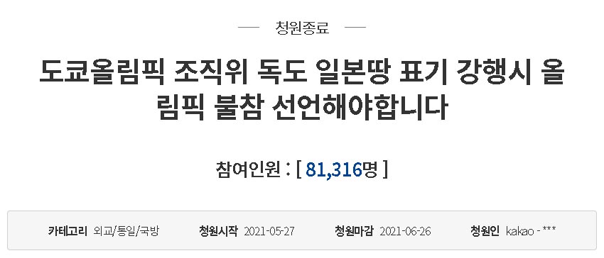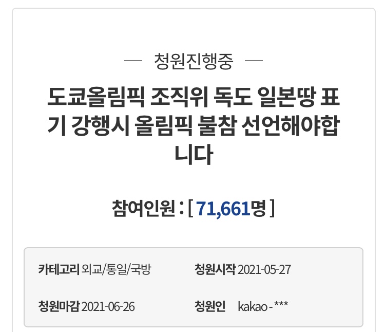 青瓦台国民請願の東京オリンピックボイコットを見守るスレ(目指せ20万)