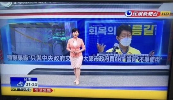 >台湾の民間放送「ミンシTV」は、海外話題コーナーを通じてクォン・ヨンジン大邱市長が言及する場面を流し、「韓国政府が"不法"と言った。詐欺にあったようだ、台湾もワクチンが不足しているが、こんなことがあっては困る」とし、反面教師にしようと主張した。また朝鮮人は敗北したのかwww