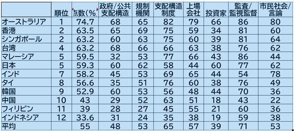 アジアコーポレートガバナンス協会、韓国52.9点 オーストラリア、香港、シンガポール、台湾、マレーシアの順