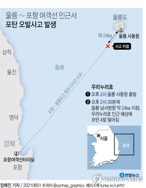 くらっと瞬間... 鬱陵〜浦項旅客船周辺に砲弾4発離れ