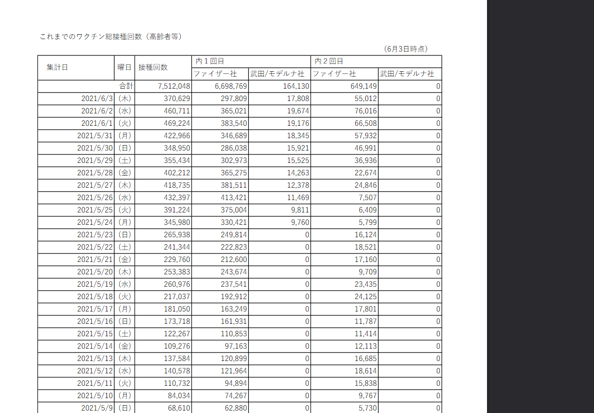 6月3日基準=1560万回接種~ ^^>>119