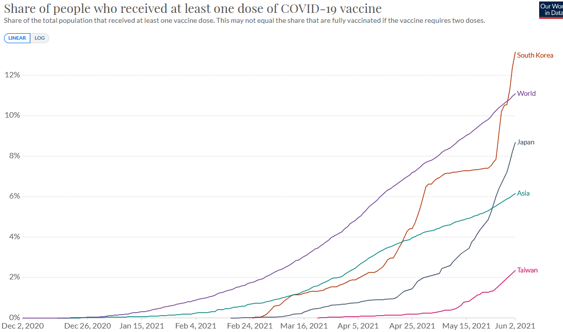 比較対象として日本、アジア、世界はわかるけど、そこに台湾を追加する辺りよっぽどワクチン支援が羨ましかったんだな
