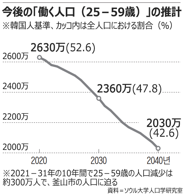 10年後の労働人口300万人減少(ソウル大学 人口学研究室 予測)>>35