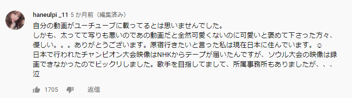 歌ってた本人がYouTubeで動画を見つけ、自分であるとコメント