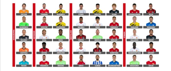 2020-2021シーズン ブンデスリーガシーズンベストイレブン最終40人の候補、鎌田大地、遠藤航、堂安律