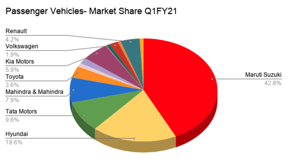 Maruti Suzuki は 2021 年 5 月にインドで最高の販売を記録し、チャート 1 位のパフォーマンスを維持しています。Hyundai と Tata Motors も、販売チャートでそれぞれ 2 位と 3 位でフィニッシュし、一貫したパフォーマンスを維持しています。