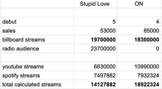 レディー・ガガの新曲「Stupid Love」と、防弾少年団の新曲「ON」の売上や配信状況の比較