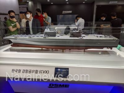 2112021/06/08(Tue) 18:24:47ID:gyMzgwODA(1/4)NG報告첫번째 모형 사진 대우가 제안한 스펙과 모형263.0m X 46.6m x 27.5m 배수량 45,000t, 속도 27노트, 모형은 1/125 스케일두번째 모형 사진 현대가 제안한 모형>>10>>562