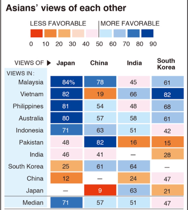 韓国の評価が高い?、日韓ひとまとめ?、東アジア先進国として?