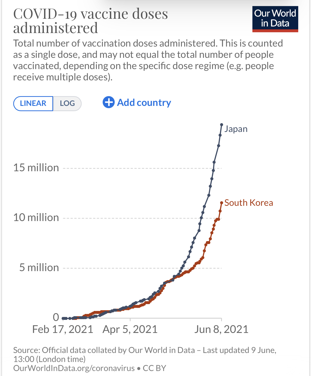 105日目って、日本は3月半ばから一番最初の医療従事者開始で既に2000万回(ファイザー、モデルナのみ)超えてるんだが…。