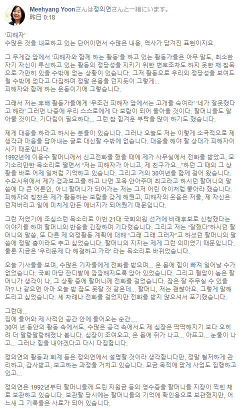 나는 후배 활동가입니다. "피해자 앞에서 고개를 숙여 잘못을했다고 말했다"라고 나중에 자신에게 돌아온다. 할머니도 그것을 알고받을 수있다. 나는 기다려야합니다 ... 나는 많은 노력을했습니다.