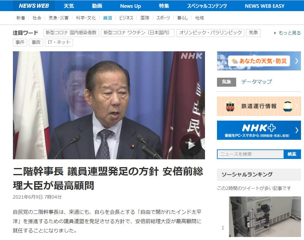 https://www3.nhk.or.jp/news/html/20210609/k10013075051000.html二階さんアメリカに名指しでロックオンされてたけど、ビビっちゃってこんなこと始めたのw