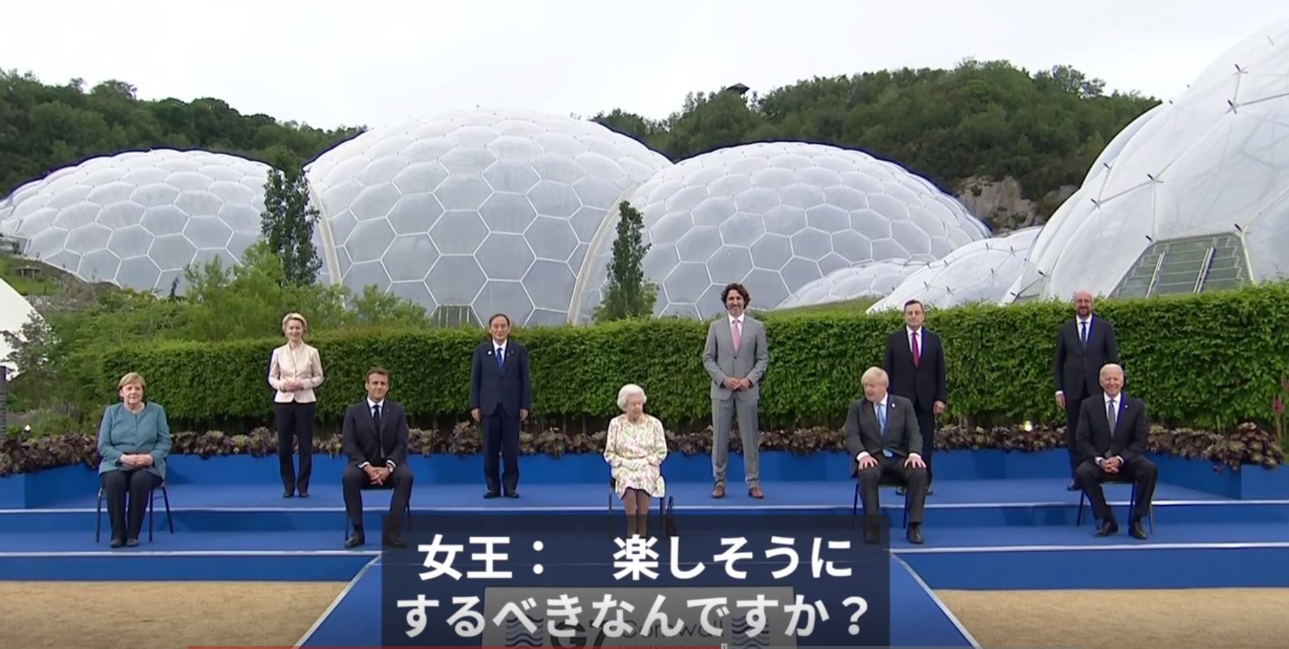 本紙は、英国のG7主催側に問い合わせた結果、大統領を前列に立て首相は後列に立てた独自の儀典原則による違いだったと返信を受けた。