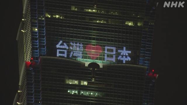 ビル壁面のメッセージ、SNS、在台日本人先行接種案、続々と贈られる花束、十分過ぎる感謝の言葉に、ワクチンの投与方法までも宇美町式と呼ぶ台湾