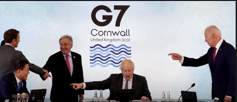 G7首脳ら、文大統領指さし「防疫ナンバーワンはこの人の国」