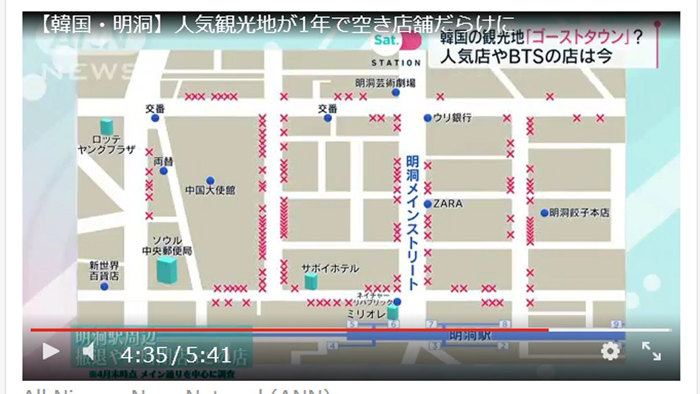 正確には「中国コロナで、中国人が全くこなくなった韓国の買い物ストリートが壊滅」かな?
