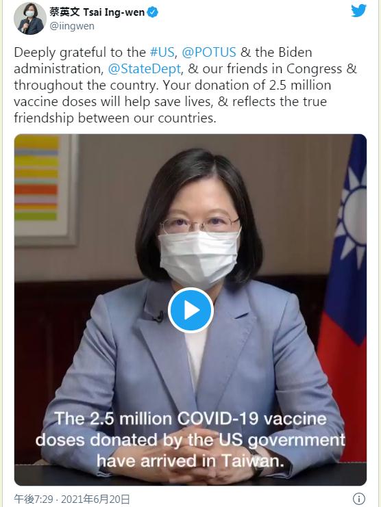 台湾「アメリカからモデルナワクチン貰った!ありがとう!」