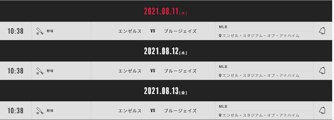 2021.08.11からブルージェイズと3連戦が予定されています。