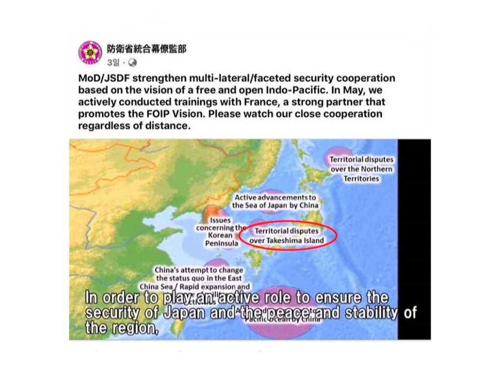 “竹島=領土紛争”、自衛隊が制作した英語・仏語の広報動画に表記