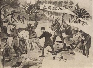 中国人を襲う朝鮮人を罵る中国側の記事。