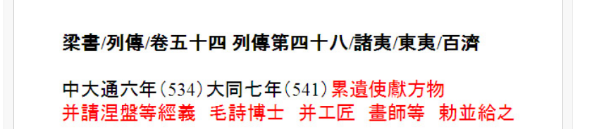 534年と541年に百済は中国に何度も何度も朝貢し、仏教の経典の下賜と、儒教の専門家や職人、画家などの技術者を派遣してくれるようにお願いしまくって、中国の皇帝から下賜される